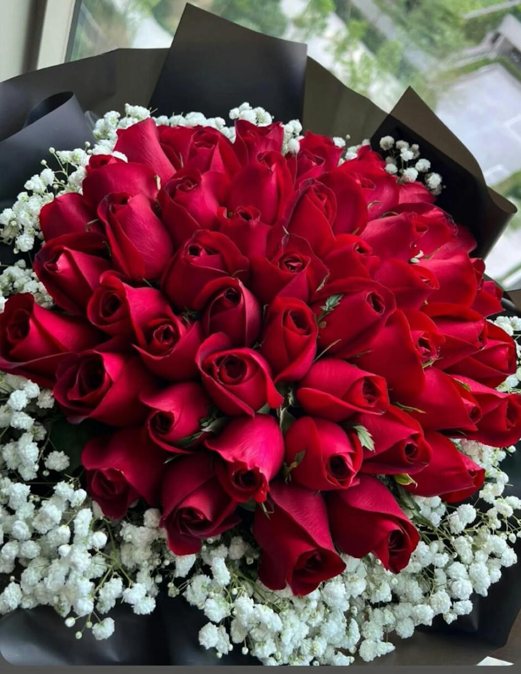 紅玫瑰花束+白色滿天星 (圖中為99枝)
